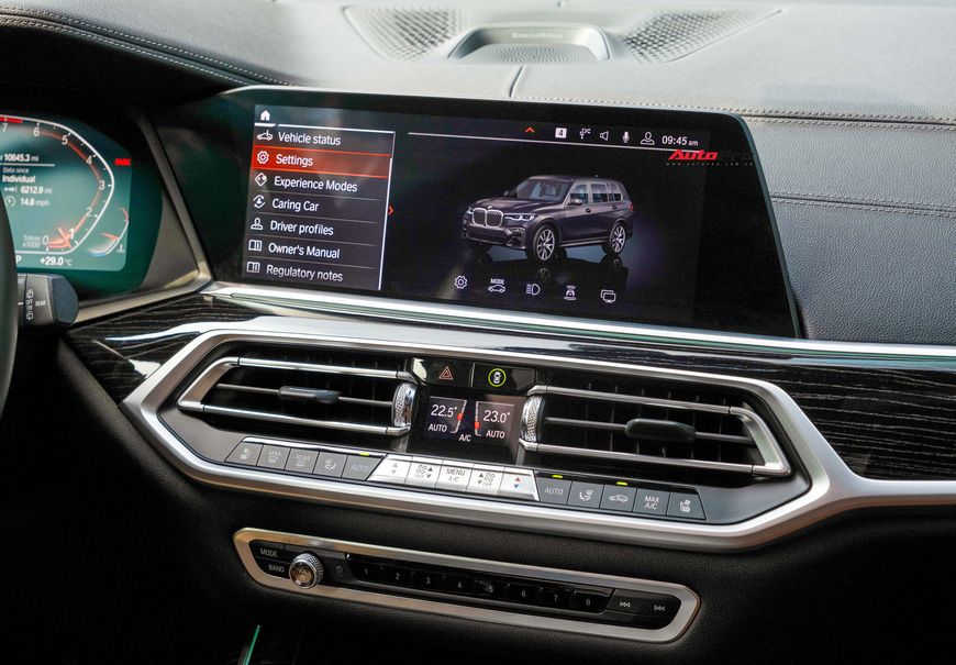Khoang cabin bên trong chiếc BMW X7 M-Sport khá rộng rãi, sở hữu bộ ghế ngồi bọc da Merino. Bên cạnh đó là những tùy chọn cao cấp như bộ đôi màn hình 12,3 inch cỡ lớn phía trước, hệ thống âm thanh Bowers & Wilkins, điều hoà tự động 5 vùng, ghế trước tích hợp sưởi và massage, cửa sổ trời toàn cảnh Sky Lounge...