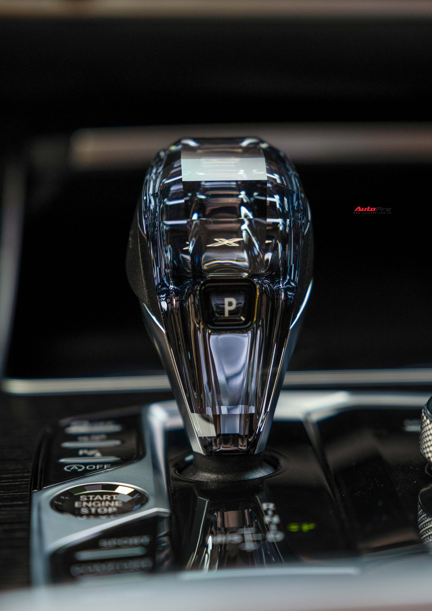 Điểm nổi bật nhất trong khoang nội thất chính là cần số pha lê - chi tiết khiến cho nhiều đại gia Việt nhanh chóng "xiêu lòng" với BMW X7. Nút Start/Stop, núm điều khiển iDrive và nút điều chỉnh âm lượng cũng được phủ pha lê tỉ mỉ.