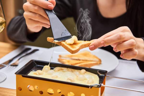 Người Thụy Sĩ vô cùng yêu thích phô mai và raclette không phải là món ăn ngoại lệ. Nó có thêm một chút nước sốt, ăn kèm với khoai tây, hành ngâm chua, gherkins và thịt khô. Nếu quá mệt sau một ngày đi ngắm cảnh và dạo chơi ở Thụy Sĩ, thưởng thức món ăn này sẽ giúp bạn cảm thấy hưng phấn và nạp đầy năng lượng ngay lập tức.