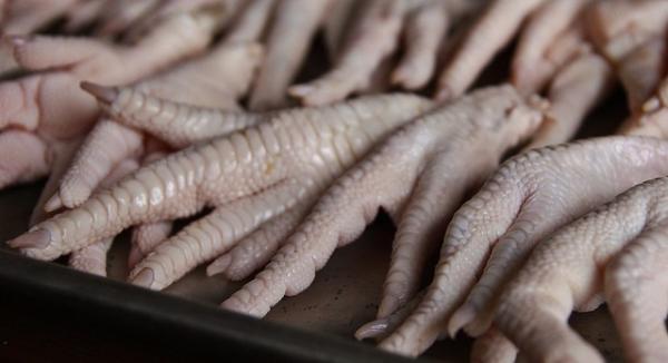 Chân gà thường được bán rong, ăn cùng với cháo. Một số người nước ngoài tỏ ra khá ngạc nhiên trước món ăn này, nhưng chân gà có vị khá ngon sau khi được nấu cùng nhiều loại gia vị.