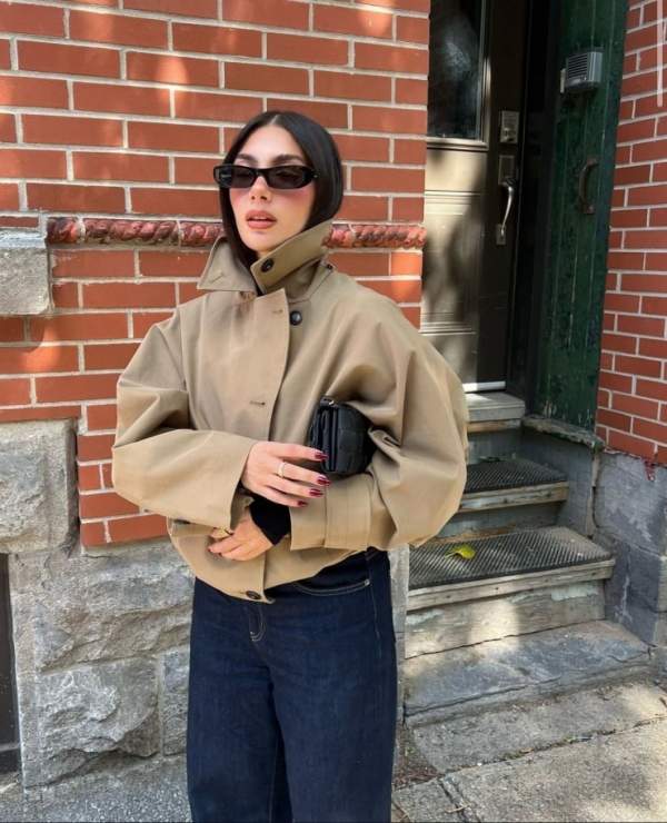 Thay vì áo len cổ cao quen thuộc, áo khoác cao cổ dáng ngắn đang dần chiếm ưu thế. Phần cổ có thể điều chỉnh bằng khuy hoặc dây kéo giúp người mặc dễ thích ứng với thời tiết. Thiết kế này mang lại vẻ ngoài gọn gàng, trẻ trung và rất hợp với phong cách tối giản.