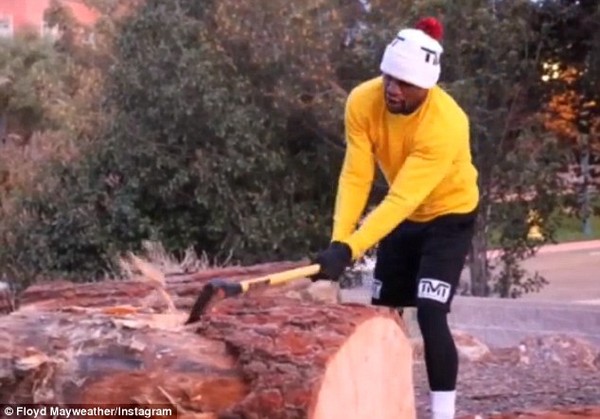 9. Một trong những bài tập của Mayweather là... bổ củi. Những cây gỗ để tay đấm này luyện tập được mua từ Big Bear (California).
