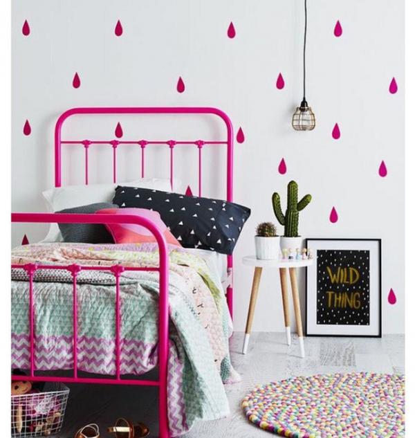 4. Giường ngủ đầy sắc màu với tông màu hồng đậm tôn lên sự nữ tính kết hợp với các bức tranh sinh động sẽ làm phòng ngủ của bé gái nhà bạn tràn ngập sức sống.