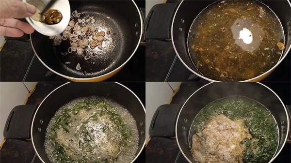 Khi cá chín thì bỏ lá lốt thái nhỏ, nước cốt chanh, hành củ và hạt tiêu xay vào nồi. Khi nước sôi trở lại thì tắt bếp. Múc canh ra bát.