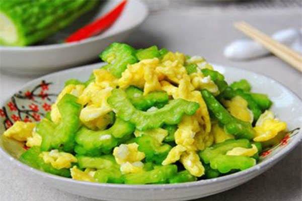 Khi trứng và mướp đắng vừa chín tới thì tắt bếp.