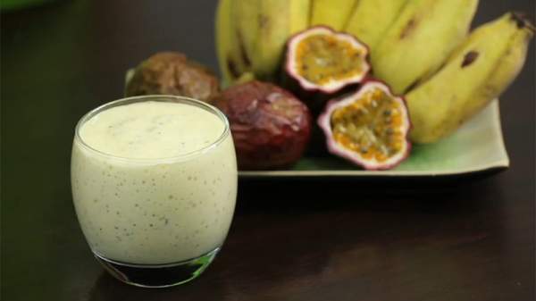 Cách làm: Bạn cho hạt và nước chanh leo vào máy xay cùng chuối đã lột vỏ, cắt nhỏ. Thêm sữa tươi/sữa hạt vào và bấm máy xay nhuyễn là xong.