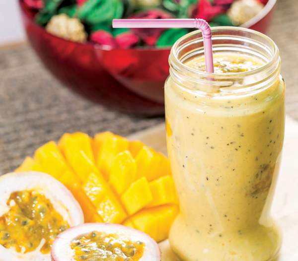 Cách làm: Bạn gọt vỏ xoài, cắt nhỏ. Chanh leo bổ đôi, vét lấy hạt và nước. Cho các nguyên liệu vào máy xay sinh tố và xay nhuyễn là xong.