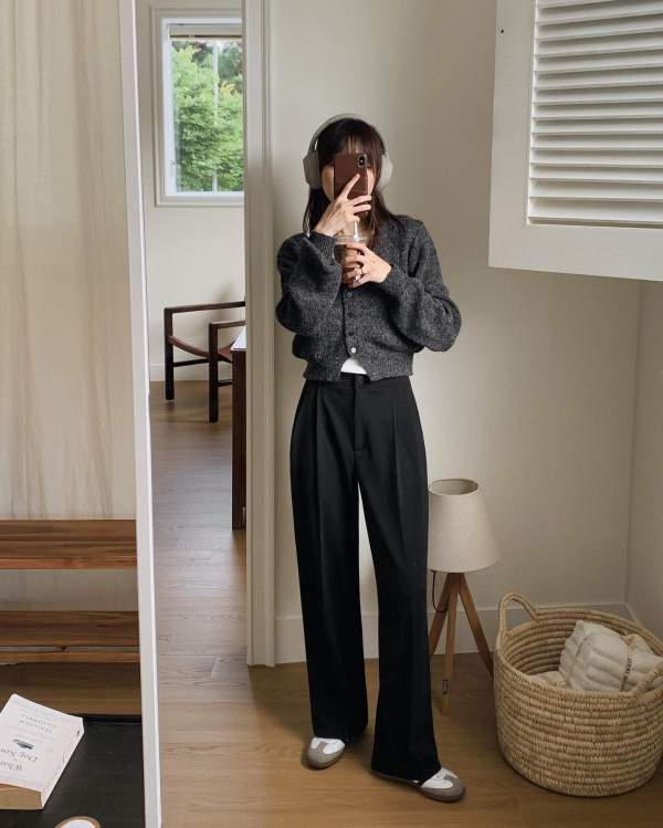 Nếu yêu thích sự đơn giản, các nàng hãy chọn áo cardigan màu trung tính. Để vẻ ngoài thêm nổi bật và rạng rỡ, áo cardigan họa tiết, cardigan màu pastel hoặc cardigan màu đậm là mảnh ghép lý tưởng của quần âu tối màu.