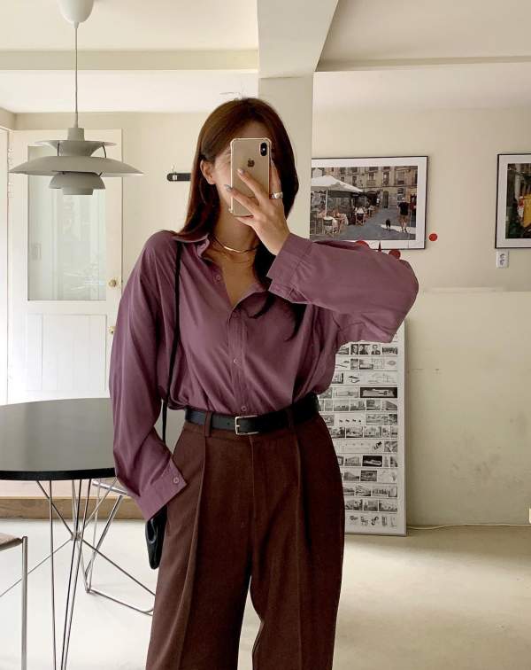 Kết hợp áo sơ mi oversized với quần âu tối màu, bạn sẽ có được bộ trang phục thanh lịch và thời thượng. Công thức này phù hợp để diện tới công sở hoặc dạo phố cuối tuần. Trong thời tiết lạnh giá, các nàng có thể khoác ngoài một chiếc áo trench coat, blazer hoặc áo dạ dáng dài để tạo nên bộ trang phục ấm áp nhưng vẫn chuẩn sành điệu.