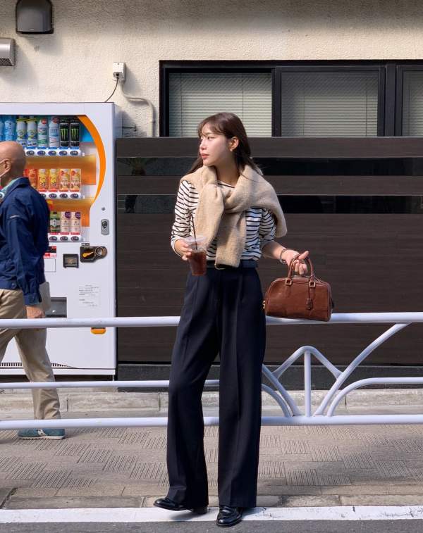 Áo kẻ ngang là xu hướng thời trang đáng chú ý trong mùa lạnh năm nay. Mẫu áo này mang đến nét trẻ trung và nổi bật cho diện mạo nhưng vẫn có sự thanh lịch, chuẩn mốt. Các nàng có thể kết hợp áo kẻ ngang với quần âu tối màu để có được vẻ ngoài trẻ trung hơn. Chị em đừng quên sơ vin khi diện áo kẻ ngang và quần âu tối màu. Thao tác này giúp tôn dáng và nâng tầm vẻ sang xịn mịn. Một số món phụ kiện như thắt lưng da, dây chuyền hay khuyên tai có thể trở thành điểm nhấn đầy cuốn hút cho set áo len kẻ ngang và quần âu tối màu.