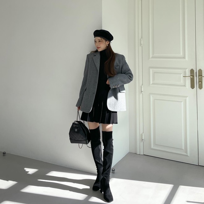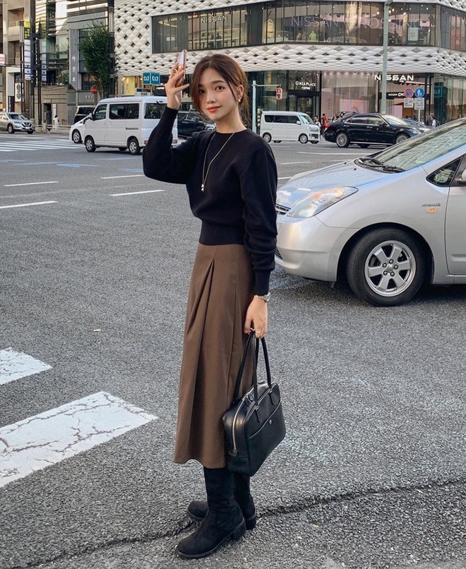 Ngay cả khi bước sang mùa lạnh, chân váy ngắn vẫn là món thời trang được chị em ưa chuộng. Có nhiều cách để giữ ấm khi diện chân váy ngắn, đó là kết hợp với áo dài tay, mặc thêm quần tất và đi boots cao cổ. Cách mix chân váy ngắn với boots không chỉ tạo sự ấm áp, mà còn giúp vẻ ngoài thêm sang chảnh, tiểu thư.