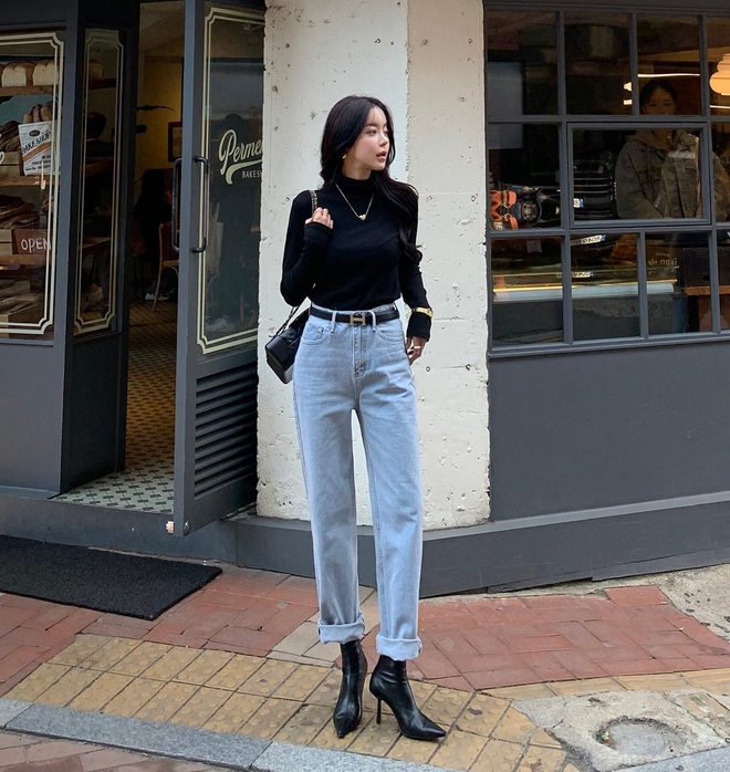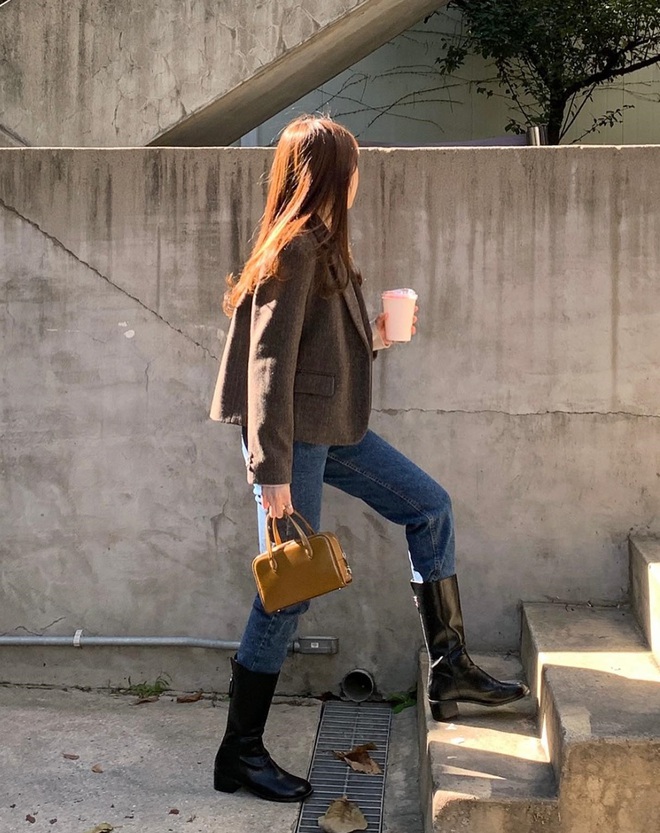 Cũng nhờ nét thanh lịch, chỉn chu mà quần jeans mix với boots vừa hợp diện đi dạo phố, vừa lý tưởng để áp dụng tới công sở. Các nàng hãy áp dụng một số "bí kíp" tôn dáng khi diện boots như giấu gấu quần vào trong boots, hay xắn gấu để tạo sự cao ráo, thanh thoát cho tổng thể.