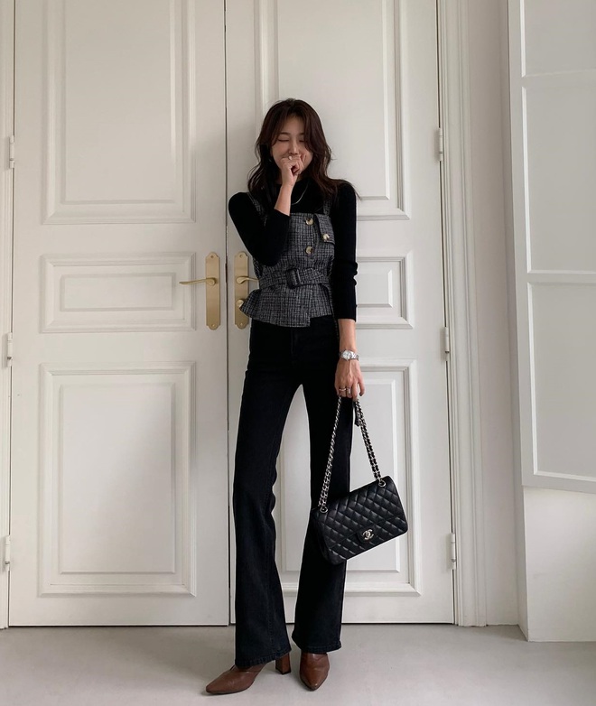 Quần ống loe hiện đang phủ sóng phong cách của các quý cô sành điệu. Mẫu quần này tạo sự nổi bật, sang chảnh cho người diện, mà vẫn rất chuẩn mốt, trẻ trung. Quần ống loe kết hợp ăn ý với boots để tăng thêm điểm sành điệu. Các quý cô mặc đẹp có một "bí kíp" tuyệt hay để "hack" dáng với quần ống loe, đó là kết hợp với boots cao gót và diện áo nhấn eo. Như vậy, đôi chân không chỉ dài hơn mà vóc dáng còn thêm thon gọn, thanh thoát.