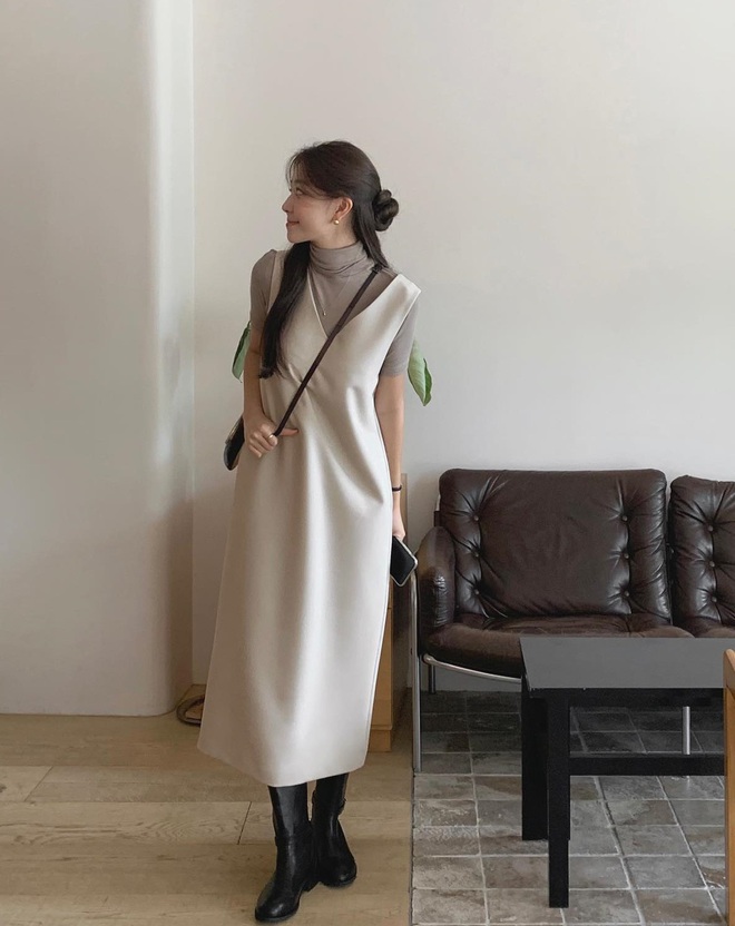 Công thức váy liền và boots là sự kết hợp luôn "hot" vào mùa lạnh. Nét nữ tính của váy liền và sự thời thượng của boots sẽ tạo nên bộ trang phục nổi bật, sang trọng. Dù kết hợp boots thấp cổ hay boots cao cổ với váy liền, bạn cũng đều có được tổng thể outfit sành điệu, sang xịn mịn. Lưu ý rằng ngoài boots đế bệt, bạn cũng nên thử diện boots cao gót với váy. Ý tưởng diện đồ này cho hiệu quả tôn dáng tối ưu và đang là xu hướng. Không chỉ phù hợp để diện đi dạo phố, công thức váy liền và boots còn có thể áp dụng tới các bữa tiệc hay đám cưới.