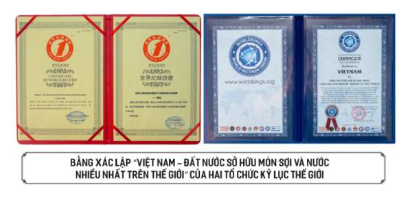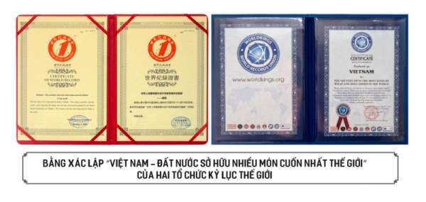 Như vậy, với sự xác nhận từ Liên minh Kỷ lục Thế giới – WorldKings và Hiệp hội Kỷ lục Thế giới – WRA, Việt Nam chính thức có 05 món ăn đặc sản được hai tổ chức Kỷ lục Thế giới cùng xác lập Kỷ lục Thế giới.