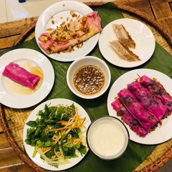 Bánh cuốn thanh long có màu hồng bắt mắt Ảnh: Bánh cuốn Bà Hanh