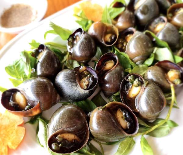 Từ những con ốc bươu giòn béo, người ta làm sạch, luộc sơ rồi bỏ lên lửa than nướng, rưới thêm nước mắm, tiêu và bột ngọt. Món ăn được thưởng thức kèm tiêu xanh và rau răm tạo hương vị chua, cay hấp dẫn. Đặc sản này gắn liền với vùng đất Tây Đô. Ảnh: David.gakowski.