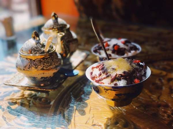 Cơm được nấu cùng những quả cây nhân sâm được xem là một món ăn đặc biệt của người Tây Tạng. Họ thường ăn món ăn này vào các dịp lễ hội hoặc đám cưới, đặc biệt trong lễ hội mừng năm mới của người Tây Tạng không thể thiếu món ăn này.