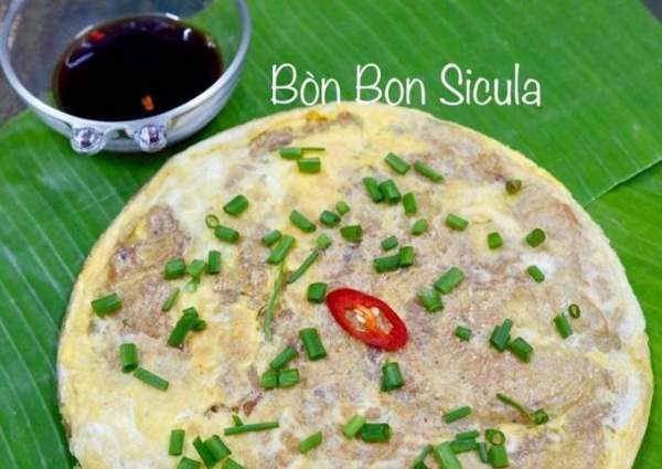 Từng miếng bánh khoai trong dẻo ngoài giòn, bùi vị khoai, bao trùm vị béo của nước cốt dừa, thơm hương lạc rang và nếp rán giòn, lại còn chan thêm mỡ hành rất hấp dẫn.