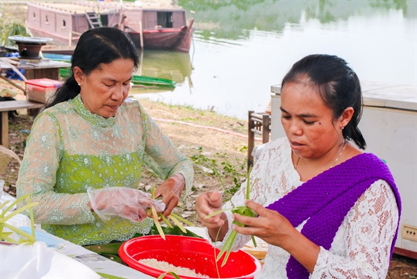 Những chiếc bánh Ka Tum được nghệ nhân Neang Phương tỉ mẩn hoàn thiện