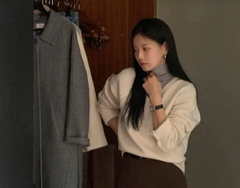 Diện áo giữ nhiệt cao cổ bên trong áo len cổ rộng, áo sơ mi đem đến vẻ đẹp phóng khoáng.