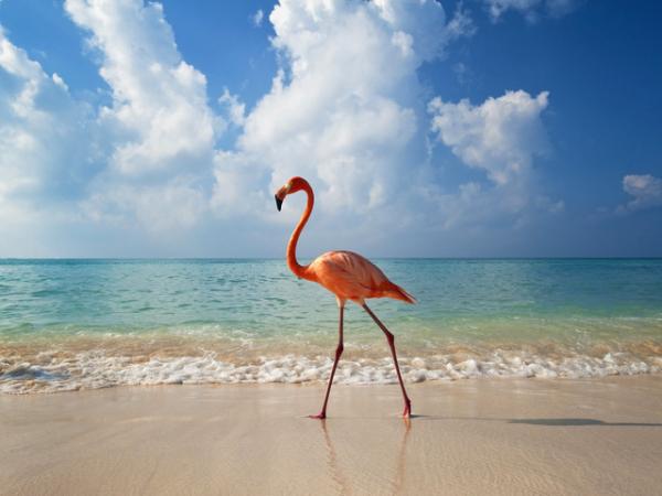 Bãi biển Flamingo thuộc vùng biển Caribbean nổi tiếng với bờ biển xanh, bãi cát trắng phau. Nhưng nơi đây hút khách du lịch theo cách rất riêng nhờ đàn chim hồng hạc thân thiện. Bầy chim hồng hạc là những “vị khách” thường xuyên xuất hiện bên bờ biển. Chúng rất dạn dĩ và thân thiện, không ngại xin thức ăn từ các du khách.