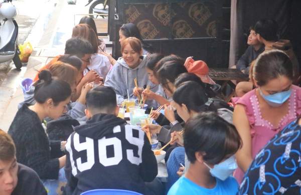 “Biết tới quán nhờ mạng xã hội, tôi tới ăn thử một lần rồi ghiền luôn. Sau đó tôi quen bé này, rồi dẫn em tới đây ăn. Mà được cái hợp khẩu vị của 2 đứa luôn. Chắc 1 tuần tới đây ăn 3 - 4 lần, kiểu bị ghiền á. Với lại cũng thương cô chú lớn tuổi mà còn vất vả mưu sinh nên mình ủng hộ”, anh nói.