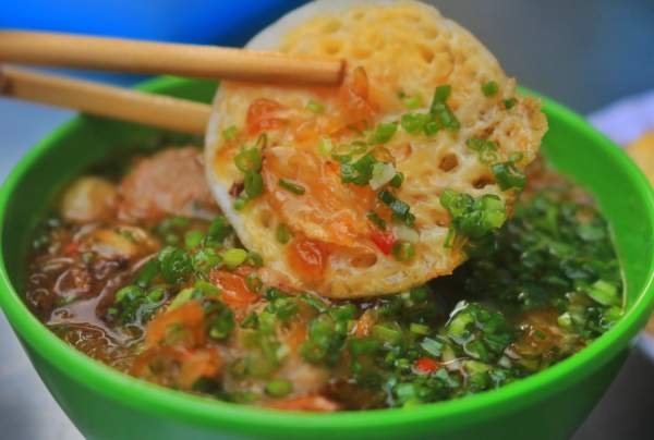 Chấm phần bánh vào tô xíu mại, thực khách sẽ cảm nhận được hương vị đậm đà trong món ăn
