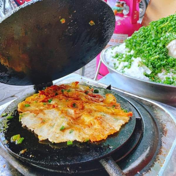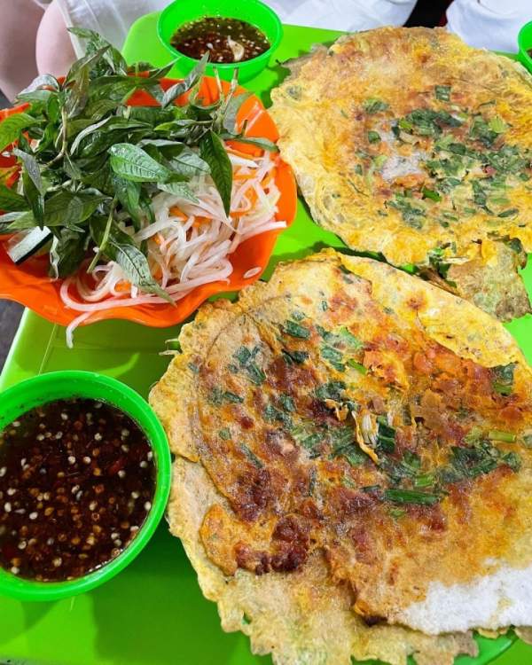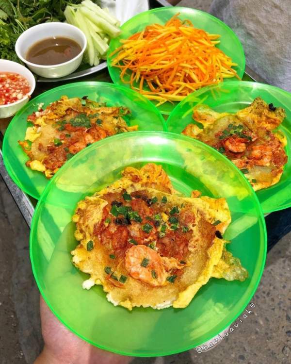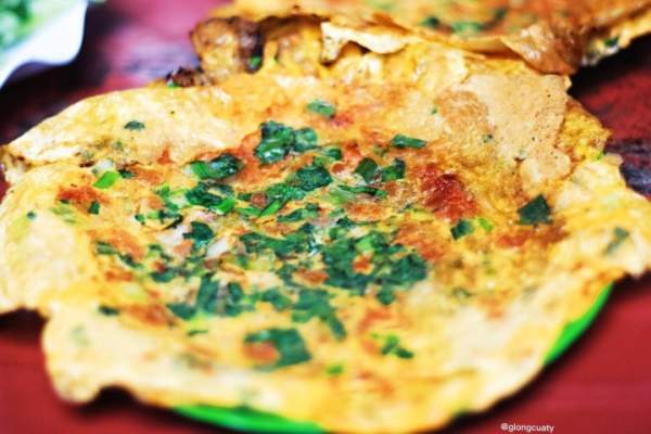 Chiếc bánh dẹp và nhỏ nhưng chứa đầy những trải nghiệm ẩm thực đặc biệt, từ độ dai dai của bánh, mùi thơm của hành lá, thịt, trứng hòa cùng cái giòn giòn, thanh thanh của rau sống ăn kèm.