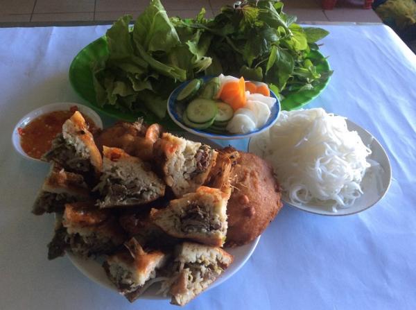 Ăn kèm với bánh giá có bún, rau sống, rau thơm, nước mắm tỏi ớt. (Ảnh nguồn Internet)