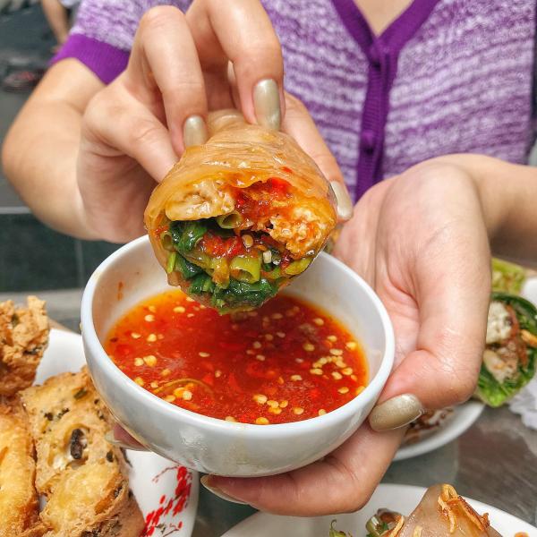 Quán bún riêu nhỏ núp hẻm suốt 16 năm ở đường Nghĩa Hòa, quận Tân Bình là nơi phục vụ món gỏi cuốn hấp dẫn này. Hương vị bún riêu truyền thống được gói trong những chiếc gỏi cuốn nhỏ gọn.