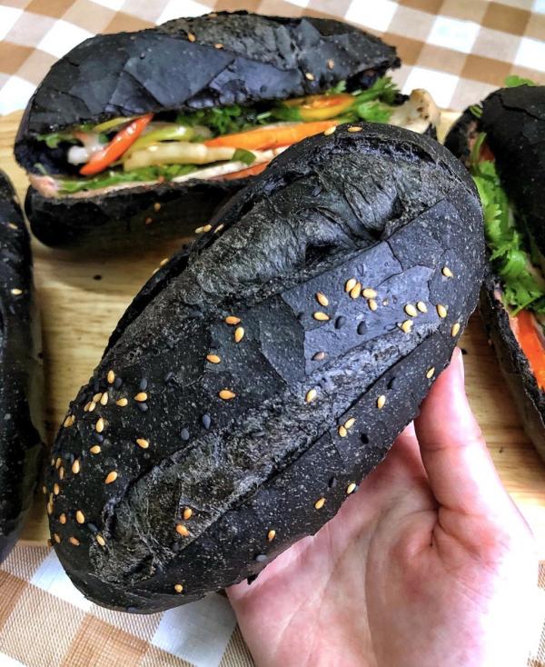 Có nguồn gốc từ đất mỏ Quảng Ninh, bánh mì than tre gây ấn tượng thực khách với lớp vỏ và nhân màu đen. Từ 20.000 đến 45.000 đồng, bạn có thể thưởng thức "bánh mì bóng đêm" cùng các loại nhân như chả mực, cua bể, xíu mại tôm, gà nướng, bò nướng phô mai và heo quay... Đường Nguyễn Thái Bình (quận 1) và Phạm Ngọc Thạch (quận 3) là nơi phục vụ món ăn này.