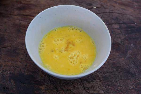 Đập quả trứng vào bát rồi đánh đều.