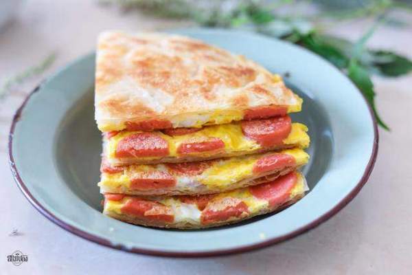 - Bánh đa nem (bánh tráng), 2 thanh xúc xích, 1 quả trứng.