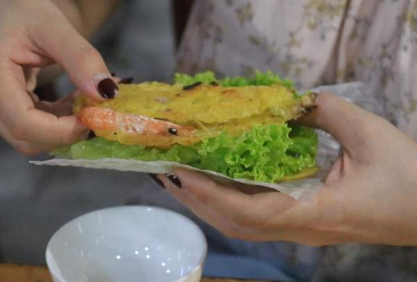 “Tôi ăn ở nhiều quán bánh xèo miền Trung rồi nhưng thấy ở đây là hợp khẩu vị nhất, nhất là món nước mắm đậu số dzách luôn. Lần nào tới cũng ăn gần chục cái mới đã được”, chị tâm sự.