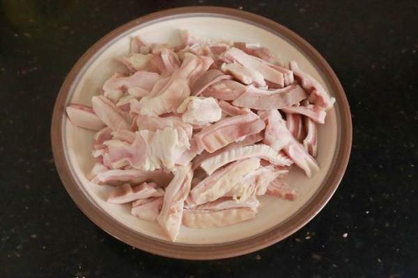 Bước 1: Cho bao tử heo vào nước ấm rửa qua một lần rồi đổ nước đi. Sau đó rắc chút muối hoặc bột mì vào chà xát nhiều lần rồi rửa sạch lại. Lặp lại thêm hai lần nữa để bao tử heo sạch hoàn toàn và hết màng nhầy. Chần bao tử qua nước sôi sau đó vớt ra, thái thành miếng vừa ăn.