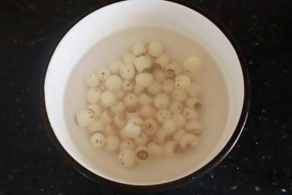 Bước 2: Hạt sen ngâm nước cho nở ra sau đó rửa sạch lại.