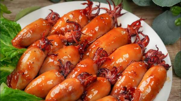 Bước 5: Bạn hãy bỏ bớt phần dầu ăn đã chiên mực ra ngoài, sau đó lại đặt lên bếp để phi thơm tỏi băm, rồi cho mực cùng với gừng đã thái lát vào đảo đều. Tiếp đến, bạn hãy cho phần nước mắm đã pha vào đun cũng với mực trong khoảng từ 2 – 3 phút, cho đến khi phần nước mắm cạn và bám xung quanh mực tạo nên màu cánh gián đẹp mắt thì tắt bếp.