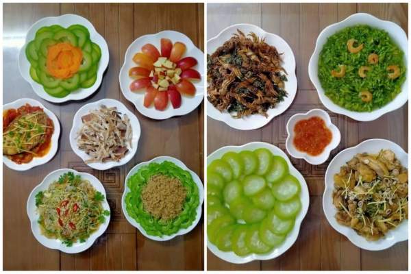 Vì rất khéo tay nên ngay cả khâu trình bày bữa cơm cũng được chị thực hiện khá kỳ công, khiến bất cứ ai nhìn thấy cũng phải trầm trồ khen ngợi.