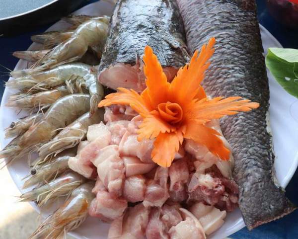 Cá lóc, thịt heo ba chỉ là một trong những nguyên liệu không thể thiếu trong món lẩu mắm U Minh