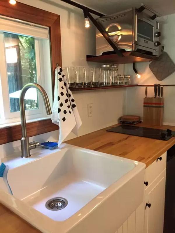 Ngôi nhà nhỏ xinh này có diện tích khoảng 23m², tọa lạc tại Guemes Island, Washington, Mỹ - một hòn đảo nông nghiệp nhỏ với dân cư thưa thớt. Chắc hẳn khi nhìn thoáng qua, ta sẽ cảm thấy ngôi nhà này không có điều gì quá đặc biệt, chẳng khác gì phần đuôi của một chiếc xe tải bình thường. Tuy nhiên, khi đặt chân vào ngôi nhà, cả một “thế giới thần tiên” như mở ra trước mắt.