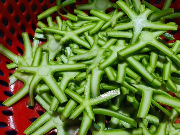 Xương rồng được thái lát nhỏ sau khi loại bỏ phần gai nhọn.