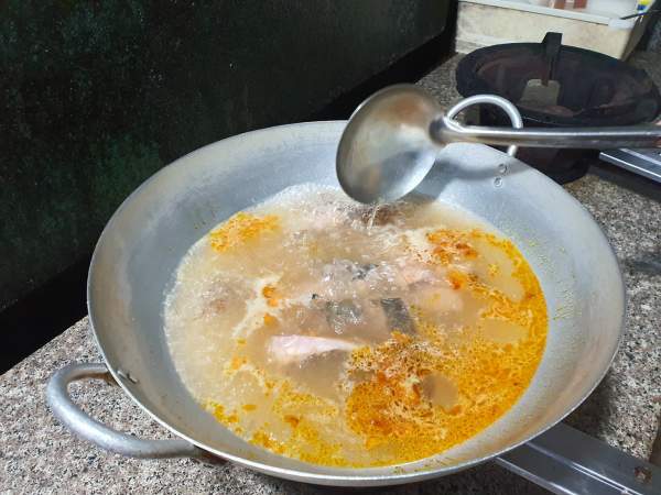Trước đó, cá đuối được om chín với gia vị bí quyết của bà Hà.