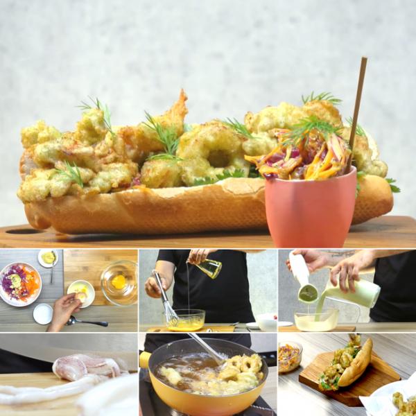 Bánh mì là một trong những đặc sản quen thuộc với mọi thế hệ người Việt. Một ổ bánh mì xốp giòn cùng nhân thịt, chả kèm các loại rau, dưa luôn là món ăn mà chúng ta có thể “ăn hoài không ngán”. Nhưng nếu bạn đã chán với những phiên bản nhân truyền thống thì sao không thử thay đổi cùng mực chiên tempura của POPS Chef xem sao? Là sự kết hợp giữa 2 nền ẩm thực châu Á, bạn sẽ được thưởng thức hương vị giòn tan bùng nổ của Tempura ngay trong ổ bánh mì quen thuộc. Không mất quá nhiều thời gian để sơ chế và thực hiện, dù bạn không phải một đầu bếp chuyên nghiệp cũng có thể dễ dàng thực hiện món ăn này.