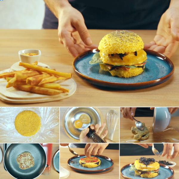 Burger được làm từ gạo, bạn đã nghe qua chưa? Nếu bạn là một tín đồ của món cơm thì nhất định không thể bỏ qua món burger cơm cá này. Bánh burger cơm có độ dẻo vừa đủ, hạt cơm tròn và bóng, thoang thoảng mùi thơm gạo mới, kết hợp cùng phần nhân được làm từ cá, tôm và các loại rau củ sẽ mang đến một hương vị hoàn toàn khác lạ. Vừa đủ chất, vừa lạ miệng, dù là trẻ nhỏ hay người lớn cũng sẽ đều “xiêu lòng” với chiếc burger này.