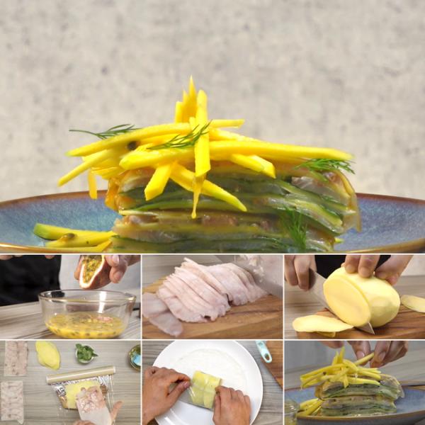 Kết hợp giữa hương vị mềm ngọt của cá mahi và vị chua nhẹ của xoài, món bánh xếp cá mahi xoài là sự biến tấu mới lạ từ món bánh crepe ngàn lớp. Không chỉ ngon miệng, món bánh này còn cung cấp cho bạn nhiều vitamin và chất xơ từ xoài, chanh dây cũng như hàm lượng axit béo, omega 3 có trong cá mahi.