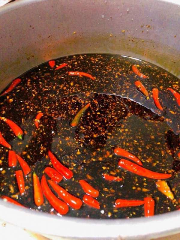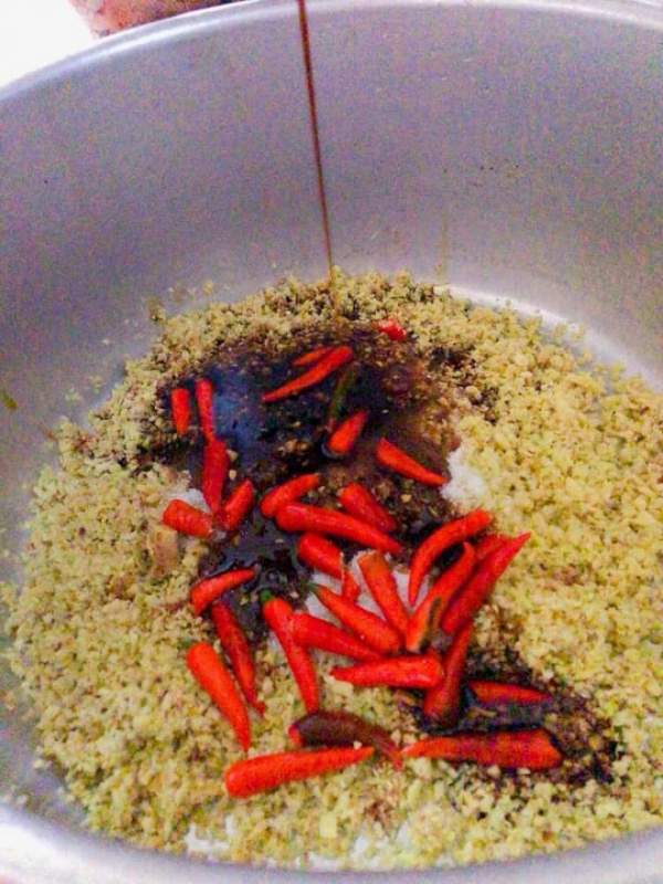 Bật bếp đảo qua cho thơm. Ớt trái để nguyên quả cho khỏi cay