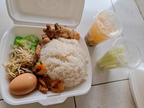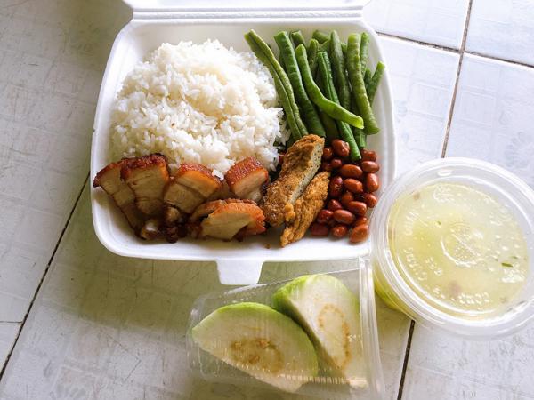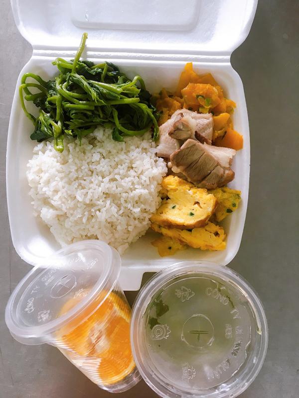 Không chỉ cơm với các món ăn chính mà mỗi suất đều kèm canh, hoa quả tráng miệng.