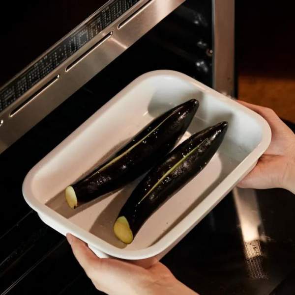Cho cà tím vào lò và nướng trong 4 phút.