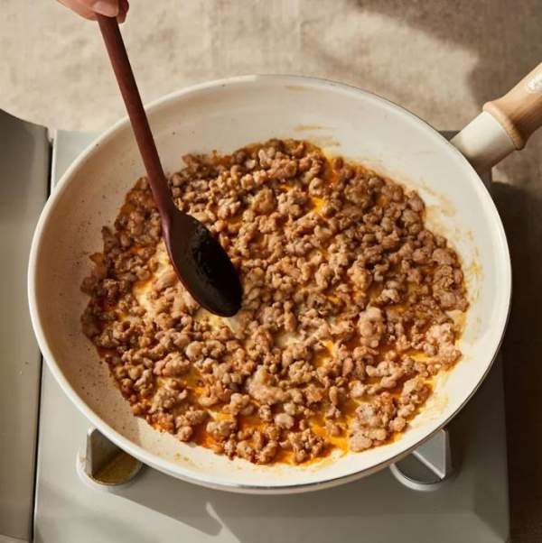 Bước 3: Đun nóng một ít dầu ăn trong chảo, tiếp đến cho thịt heo đã ướp gia vị và dầu hào vào xào.